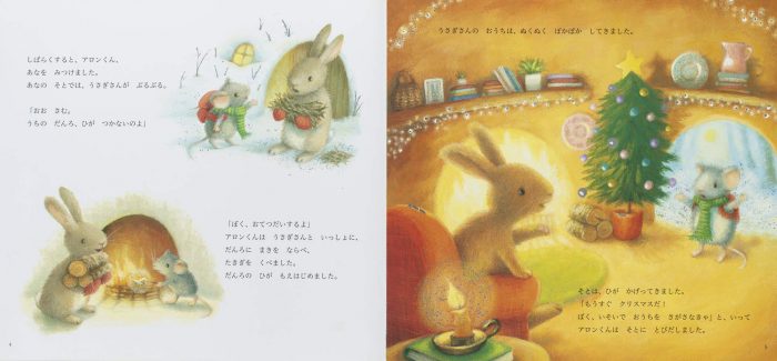 ねずみのアロンくんは、クリスマス・イブに、こずえの森にやってきました。この森でおうちをさがしたいのです。森のなかをさがしまわりますが、気にいったおうちが見つかりません。夕ぐれが迫っています。