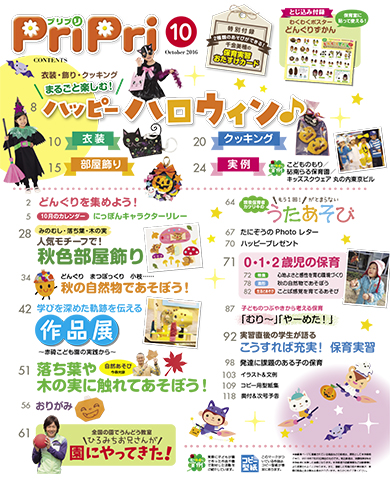 待ちに待ったハロウィン♪製作や仮装衣装、部屋飾り、クッキングと、ハロウィンを味わいつくすアイデア満載でお届け!秋の作品展に向けて、園の実例もご紹介します。また、保育実習の時期に合わせた、読み物記事&特別付録もご用意。ご活用ください。