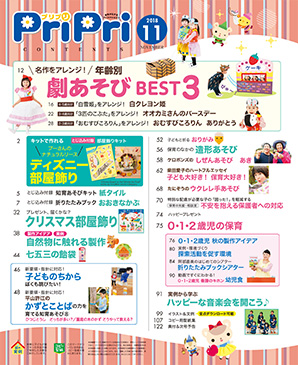 そろそろ発表会の時期ですね。今号では[1]劇あそび特集[2]音楽会特集の2本立てで、先生方の保育を応援します。劇あそび特集では、子どもたちが演じやすいように、人気の名作絵本を歌&ダンスありの脚本にアレンジ!衣装と共に、年齢別でご紹介します。音楽会特集では、本番までの保育スケジュールやステージの構成アイデア、演出のポイントを、ある幼稚園の実例からお届けします。