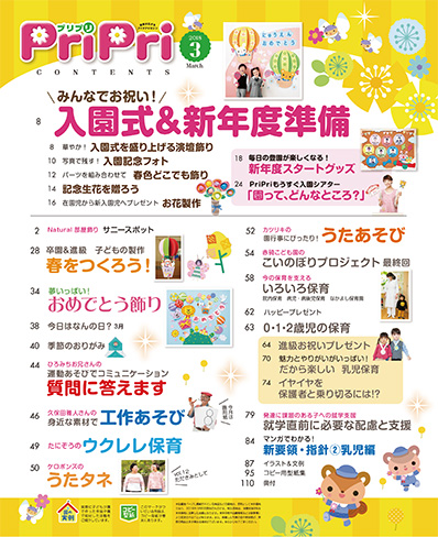 年度がわりの3月。今号では、4月からいよいよ施行される新要領・指針について、前号に続けて解説します。今号は”乳児編”をマンガでわかりやすく!また発達が気になる子の保育では、「就学支援」について考えます。もうすぐ小学校へと進学する子どもに、どのような配慮や支援を行えばよいのでしょうか。「入園式&新年度準備」大特集に加え、年度末の移行期に読んでおきたい記事が満載の今号を、どうぞお役立てください。