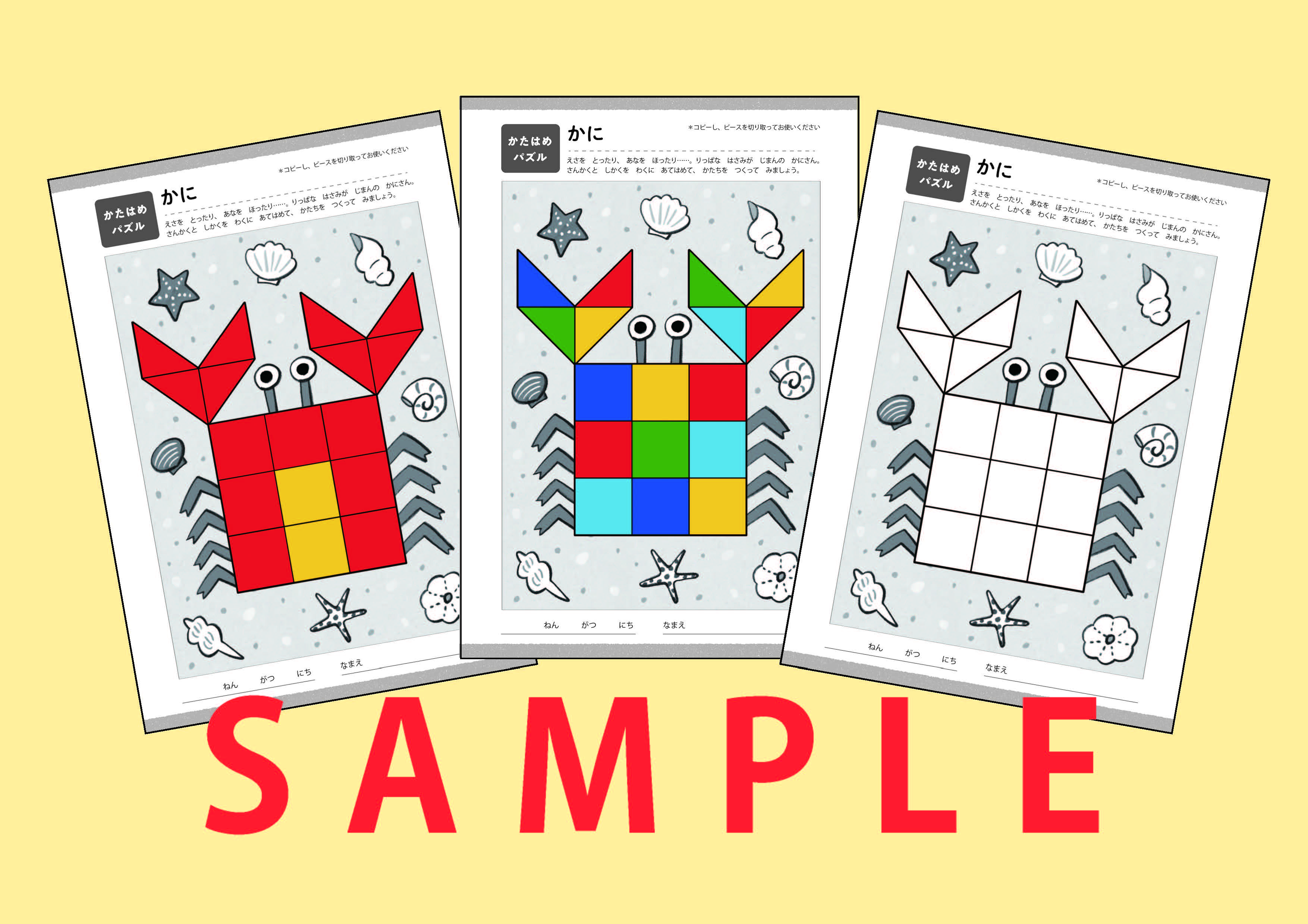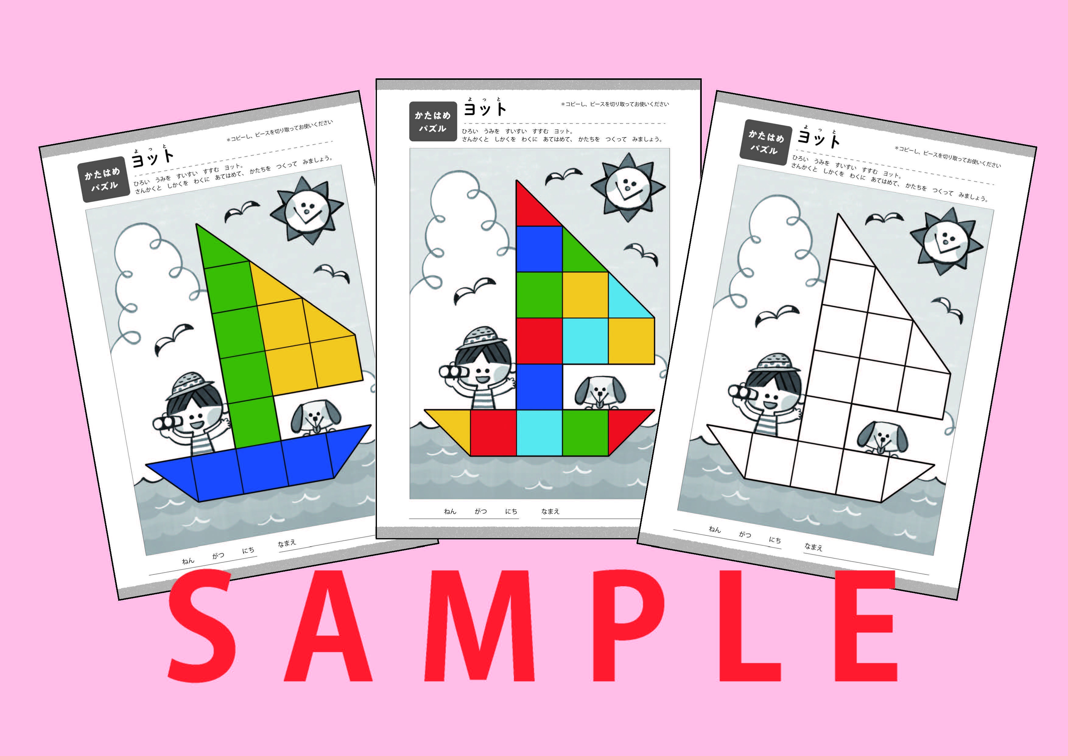 | PriPri発達支援パレット2021年夏号「コピーdeすきま時間あそび」内に掲載されている「かたはめパズル」「おはなしあそび」のカラー版ダウンロード素材です。日々の保育にぜひお役立てください。 | |