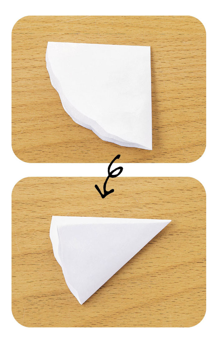| 3.和紙を折る 和紙をさらに半分に折って、丸を8等分にした形にする。クラスの子は自由に折ってよい。 |