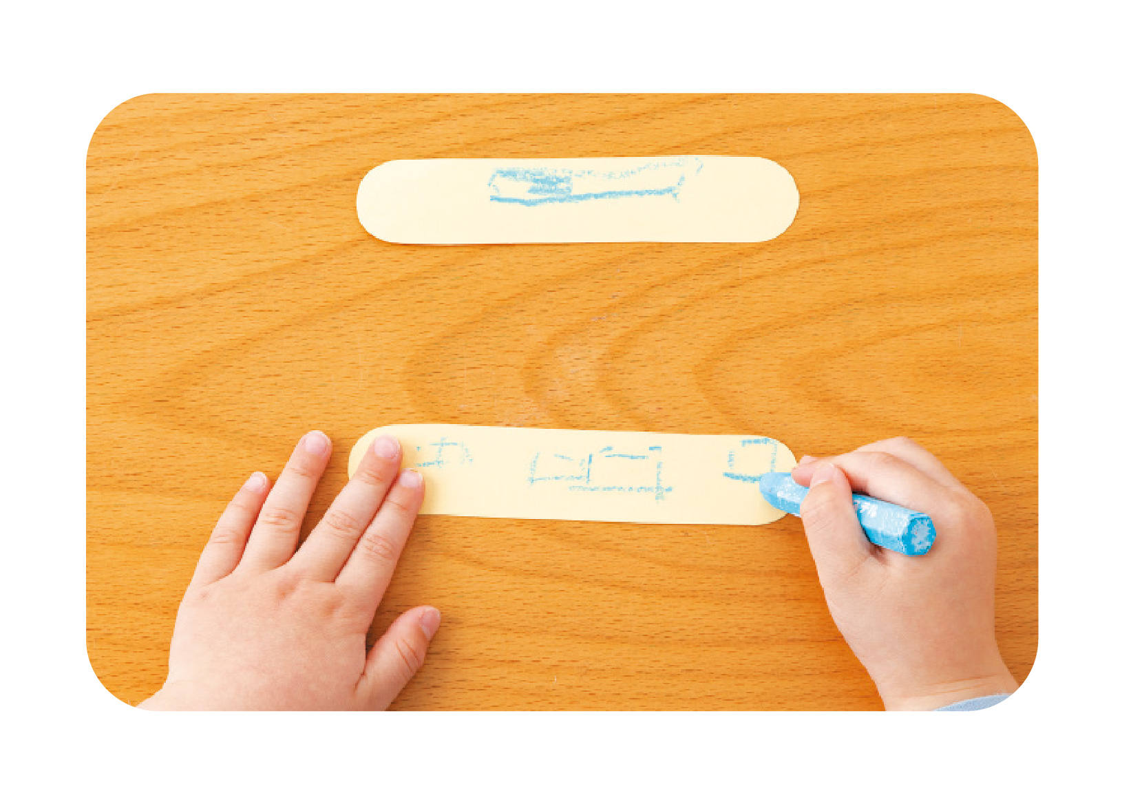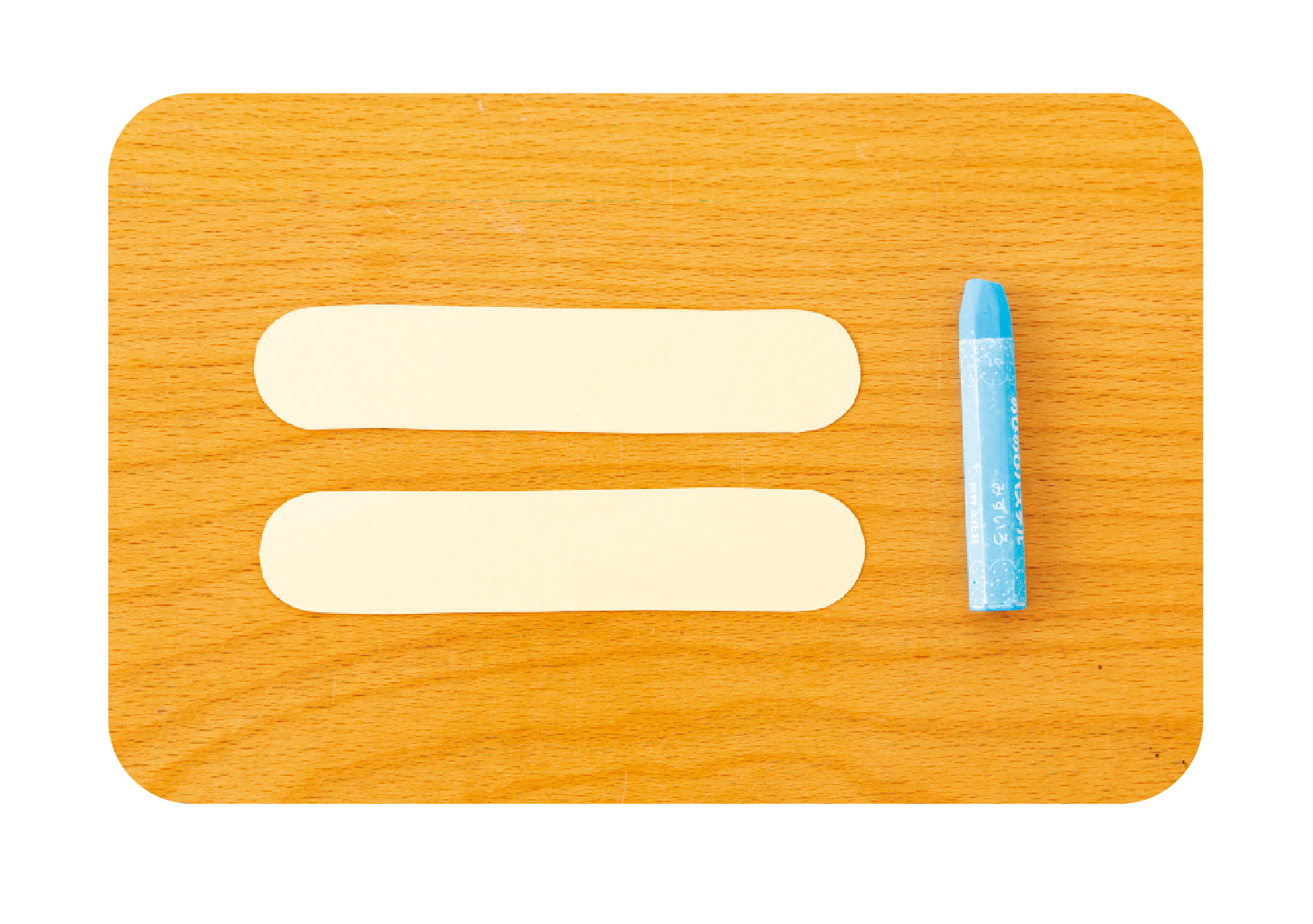 | 1.準備 あらかじめ保育者が羽の形に切っておいた画用紙を2枚と、クレヨンを出しておく。 |