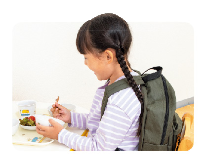 体に刺激を与えることで、落ち着いて食事ができる場合があります。いろいろ試してみて、その子にフィットする手だてを探しましょう。