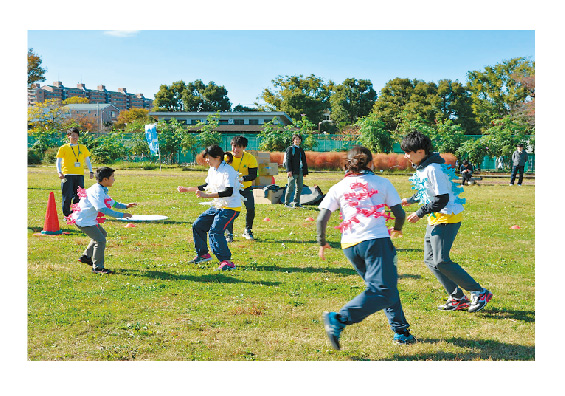 | 子どもの特性に合わせてルールを設定 「運動が苦手な人でも、障害があっても、老若男女の別なく参加できるのが『ゆるスポーツ』。世界ゆるスポーツ協会(代表澤田智洋氏)の理念に共感し、そのなかで特に発達障害に焦点を当てて開発したスポーツが『ゆるスポ De Cö』なんです」と、東京学芸大学副学長の鈴木聡さん。 ゼミ生とともにスポーツ開発に取り組み6年。ルールの理解がむずかしい、順番を守ることや人との協力が苦手などの特性があっても無理なくできるスポーツを、これまでに15種類ほどつくり出してきました。「勝っても負けても楽しめること、それぞれの特性をもつ子どもの気持ちを満たすことを意識しました。たとえば、落ち葉を散らかすチームと、それを掃いて集めるチームが戦う『清掃寺』というスポーツは、物を散らかしたい衝動性がある子ども、整頓へのこだわりがある子ども、どちらも満足できます」。 小学校の授業や地域のイベントなどで楽しまれている「ゆるスポDeCö」。今後、ますますの広がりが期待されています。 |