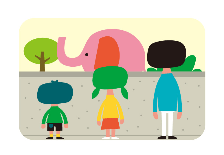 配慮が何もない状態。左と中央の子は塀の向こうにいる動物を見ることができません。