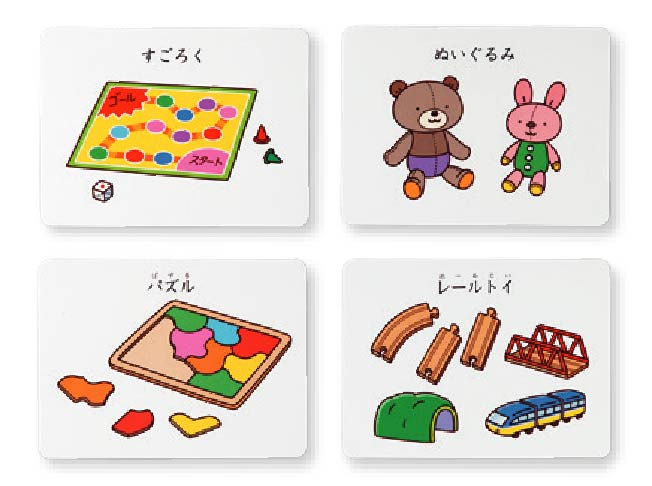 | 指示がわかりやすい! ことばだけでは保育者の指示が伝わりにくい子もいます。ことばだけでなく、絵カードも一緒に提示すると、子どもは指示を理解しやすくなります。 |