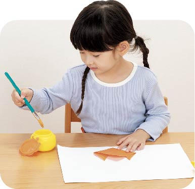 | 指で塗らずに筆や綿棒を使って 指で塗るタイプののりを使う場合は、直接手につかないように、筆や綿棒を使って。 |