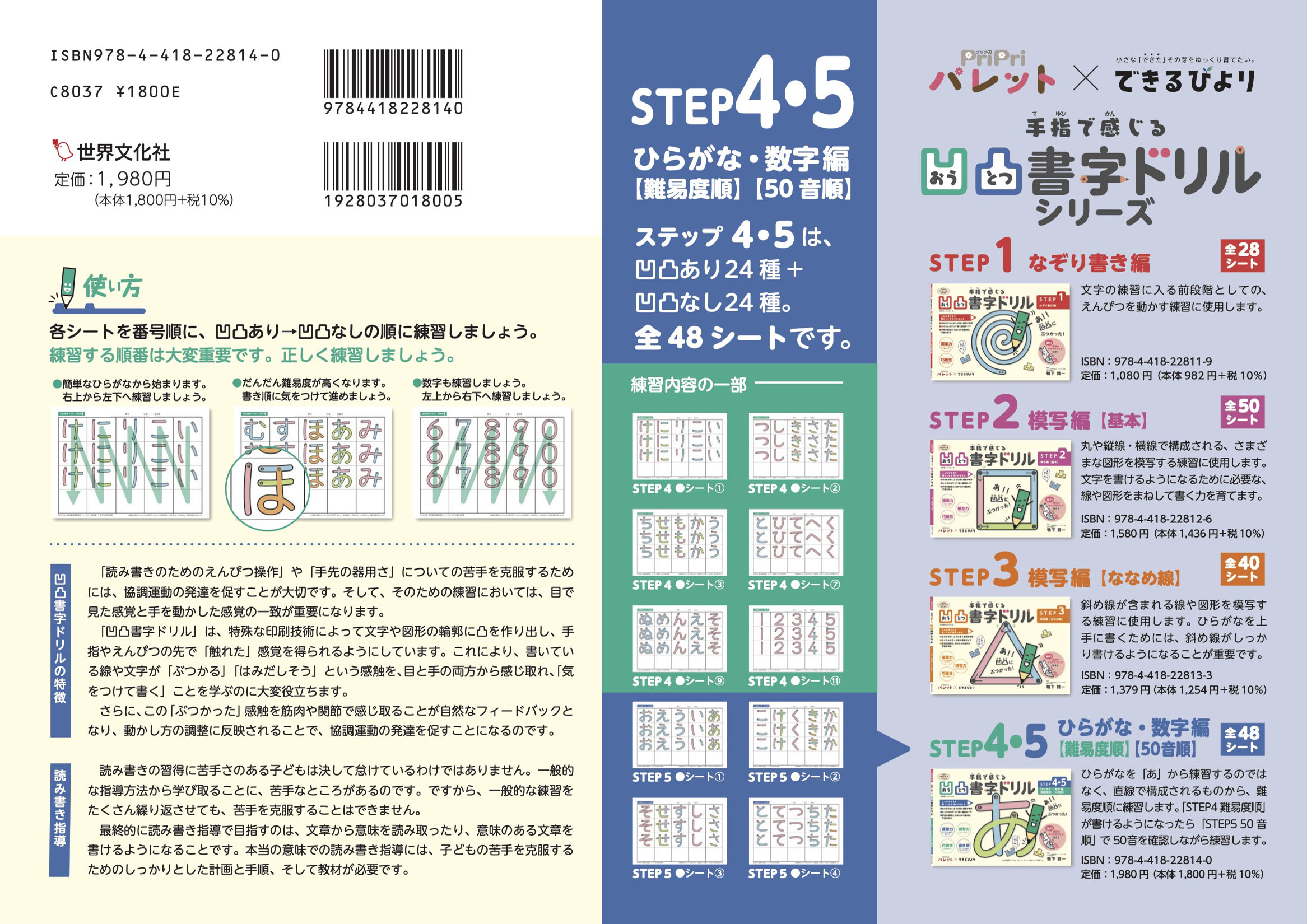凹凸書字ドリル STEP4・5 ひらがな・数字編