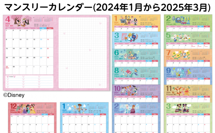 ・マンスリーカレンダーページ(2024年1月~2025年3月)